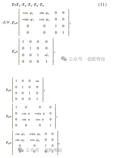 如圖 4 所示,根據刮齒坐標系可以對總變換矩陣 T 進行如下描述:
