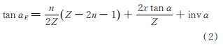 式中 Z 為齒數,αa為齒頂壓力角,x 為變位系數,α 為分度圓壓力角,inv(·)為漸開線函數。