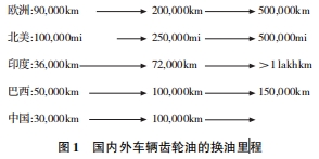 表 1 北美車輛齒輪油換油里程的發展歷程