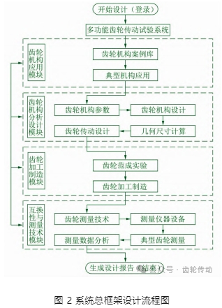 圍繞齒輪傳動試驗系統的開發腳本,制定從設計開始至設計結束的全過程功能框架流程圖,如圖 2 所示。