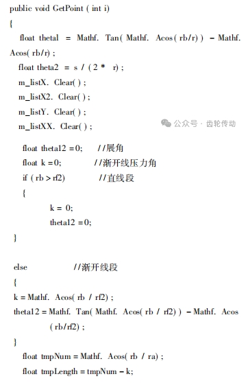 多功能試驗系統底層算法數學建模:通過數學建模工具 AlgDesigner V3.0 的二次開發,將齒輪幾何參數、基本尺寸計算及輪廓線生成編譯轉化為底層運算代碼,為程序調用提供底層數據支撐,實現齒輪機構尺寸自動化計算功能。以下是編寫的部分齒輪輪廓線自動生成的底層算法數學建模代碼段。