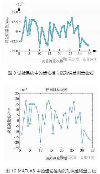小齒輪徑向跳動誤差測量曲線:任取一組小齒輪徑向跳動誤差測量數據,同時利用 Matlab 工程軟件進行同組數據測試仿真,試驗結果分別如圖 9、 圖 10 所示。