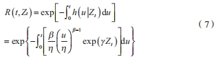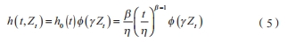 協變量函數通常采用指數函數形式。因此,威布爾比例風險模型如公式(6)所示。