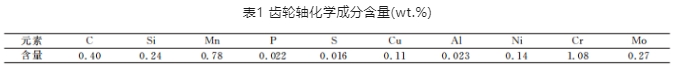 運用化學直讀光譜對材料化學成分進行分析, 齒輪軸成分見表 1,從成分可知,該材質(zhì)成分符合 GB/T3077-2015《合金結(jié)構(gòu)鋼》中 40Cr的成分范圍。