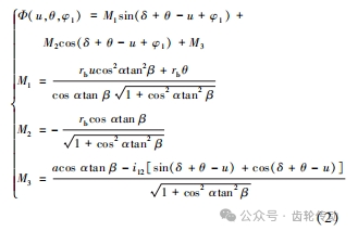 根據齒輪嚙合原理,可得嚙合函數為: