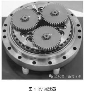 RV 減速器的實物圖,如圖 1 所示。從本質(zhì)上來講,RV 減速器是以擺線針輪行星傳動為基礎發(fā)展而來的工業(yè)機器人用精密減速器。按照行星輪系基本結構,可以將其歸類為 2K-V 型行星傳動裝置。該減速器主要包括兩級傳動裝置,分別為漸開線行星齒輪傳動和擺線針輪行星傳動。漸開線行星齒輪傳動機構中包括行星直齒輪、偏心軸和中心輪,擺線針輪行星傳動機構中包括擺線輪、偏心軸、針齒和行星架。