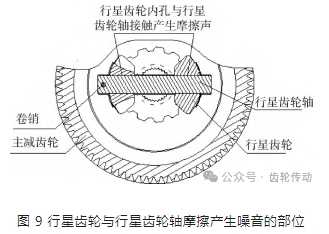 3) 行星齒輪采用磷化處理,增加其內(nèi)孔表面油膜吸附能力,改善其與行星齒輪軸摩擦聲音,摩擦部位如圖 9.