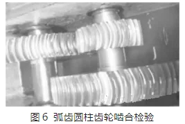 弧齒圓柱齒輪銑削加工程序是按照漸開線方向進給,退刀也是按照漸開線方向回退。刀具在沿著漸開線方向運動時要注意避免對未加工齒面的過切,從而保證待加工面有足夠的加工余量,以便保證弧齒面的加工質量。圖6為試切得到的弧齒圓柱齒輪,經嚙合傳動檢驗,證明切制的弧齒圓柱齒輪符合預期要求。
