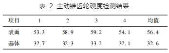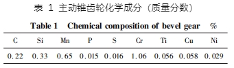 采用直讀光譜儀測定輪齒表層化學成分,齒輪材質為 20CrMnTiH 鋼,化學元素分析結果如表 1 所示,符合 GB / T 3077—2015 《合金結構鋼標準》中各元素含量的要求。