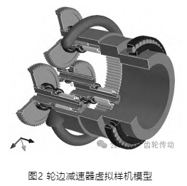 在太陽輪軸上設(shè)置一個(gè)輸入功率載荷,在內(nèi)齒輪上設(shè)置一個(gè)輸出功率載荷,根據(jù)表1建立輪邊減速器虛擬樣機(jī)模型,如圖2所示。
