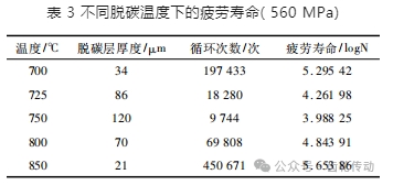 ( 4) 脫碳嚴(yán)重降低試驗鋼的疲勞壽命,脫碳層越厚,疲勞壽命越低。