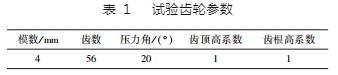 試驗材料為齒輪最常用 42CrMo 鋼,化學成分(質量分數,% )為 0. 39 ~ 0. 42C、0. 16 ~ 0. 24Mo、0. 75 ~ 1. 0Mn、0. 15 ~ 0. 34Si、0. 9 ~ 1. 02Cr,余量 Fe。調質工藝為 850 ℃ × 1 h 油淬 + 560 ℃ × 3 h 回火,調質硬度 為 280 ~ 300 HBW。從齒輪本體上取樣,取樣齒輪具體參數見表 1。