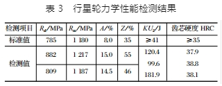 行星輪力學性能檢測結果如表 3 所列。行星輪各項力學性能指標均符合圖紙技術要求。