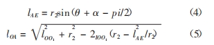 測(cè)頭與 x 軸的夾角為 θ,測(cè)頭所在位置方向 OO1 與被測(cè)點(diǎn) A 所在位置方向 OA 的夾角為 β,測(cè)頭測(cè)得的數(shù)據(jù) l測(cè)為 CD 的長(zhǎng)度加上 A 點(diǎn)在 OO1 方向上的加工誤差 ΔAOD,則|OO1|的長(zhǎng)度為: