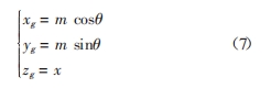 使用 MATLAB 對(duì)測(cè)得的數(shù)據(jù)進(jìn)行擬合,得出接觸線加工誤差為 7 μm。為了更方便地表示誤差,將(θ,Δm,x)形式存儲(chǔ)的數(shù)據(jù)點(diǎn)用 xyz 空間坐標(biāo)系表示,轉(zhuǎn)換公式如下: