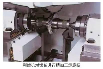 剃齒加工是根據(jù)一對(duì)螺旋角不等的螺旋齒輪嚙合的原理,利用剃齒刀與齒輪工件的嚙合傳動(dòng),從齒輪工件的齒面切削去微小的加工余量,進(jìn)行剃削。剃齒刀與被切齒輪的軸線(xiàn)空間交叉一個(gè)角度,它們的嚙合為無(wú)側(cè)隙雙面嚙合的自由展成運(yùn)動(dòng)。剃齒加工屬于齒輪的精加工,但只能用于非淬硬的齒輪(硬度小于35HRC),通過(guò)剃齒加工通常能提高齒輪精度一個(gè)等級(jí)。