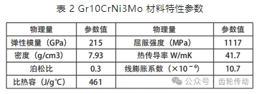 工件材料選擇 Gr10CrNi3Mo,材料特性參數見表 2。