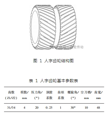 本文以某型號航天器人字齒輪為研究對象,齒輪結構如圖 1 所示,主要參數如表 1 所示。