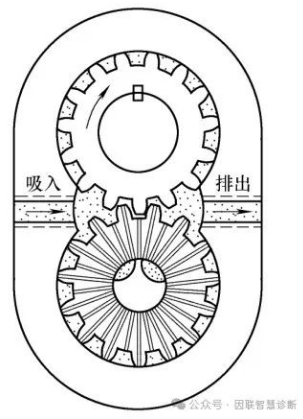 2)內齒輪泵。主動齒輪為內齒輪,從動齒輪為外齒輪,如圖2 所示。