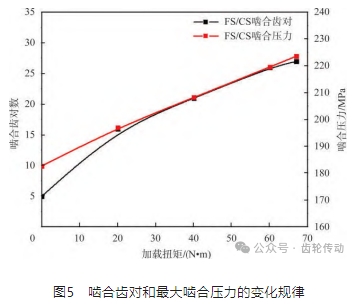 (1)當負載從 20N·m 增至 67N·m 時,柔輪與剛輪的最大接觸壓力只增加了約14%,嚙合齒對數增加了約68%,表明柔輪可以在負載變化下通過有效的周向的彈性變形實現載荷在齒對間的重新分配,負載的變化并不會顯著引起嚙合齒對的接觸壓力的變化。