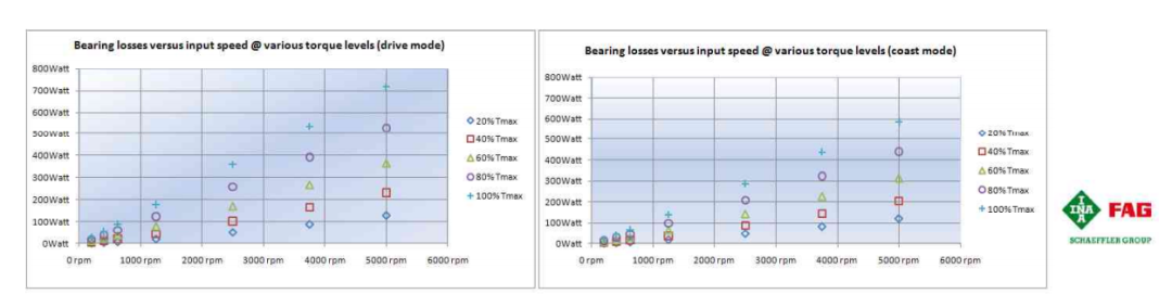 3、驅動工況和滑行工況下軸承功率損失測試結果