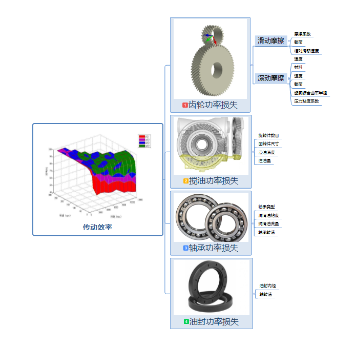 減速器傳動效率直接影響整車能耗,針對整車降能耗、減速器提升效率的需求,以某電動汽車減速器為研究對象,建立了包含齒軸、軸承和油封等零部件的減速器效率計算模型,研究了不同載荷、不同轉速工況下齒輪嚙合功率損失、軸承功率損失、攪油功率損失和油封功率損失對整個減速器效率的影響,以及軸承型號、齒輪宏觀幾何參數和微觀修形參數對效率的影響。結果表明,齒輪嚙合功率損失和軸承功率損失對整個減速器效率的影響較大。通過軸承重新選型、齒輪宏觀幾何參數優化,可以大幅提升減速器的效率。