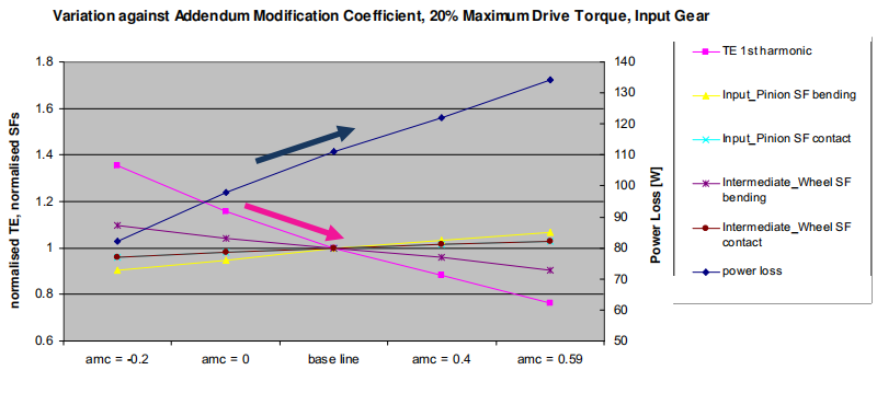 ? 變位系數:小齒輪的變位系數越大,功率損失越大,TE越來越小。