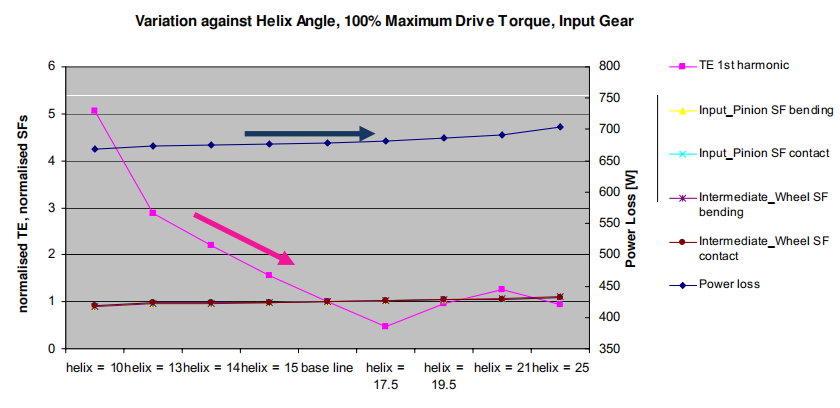 ? 螺旋角:在整數倍重合度條件下,螺旋角越大TE越小,效率變化不大。