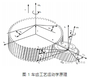 目前,國內外學者對車齒工藝進行了大量研究,并且在車齒工藝原理、刀具設計、切屑成形機理、加工誤差等方面取得了一定成果。針對車齒加工精度的問題,Guo研究了刀具運動偏心誤差對車齒加工精度的影響,研究結果表明工件齒面出現的進給刀痕的切深與刀具的運動偏心有關,進而在較大程度上影響著工件的齒向和齒形誤差。Maximilian提出了一種計算車齒成形齒面微觀形貌的數學模型,并基于該模型探討了不同軸向進對齒面微觀形貌的影響規律以及對齒輪噪聲的影響。吳震宇針對軸交角誤差的存在影響車齒精度的問題,詳細對比分析了無進給、刀具進給和工件進給三種不同進給方式以及不同軸交角誤差方向對車齒加工誤差的影響程度。楊亞蒙根據車齒運動學原理建立了機床幾何位姿誤差與車齒成形齒面法向誤差的映射關系,研究了各項幾何位姿誤差對法向誤差的影響程度。