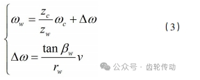 在實際車齒加工過程中,軸向進給運動的引入破壞了工件與車齒刀原本的傳動關系,因此在加工具有螺旋角的齒輪時,工件或車齒刀還需要額外增加一個回轉運動以形成齒輪齒槽螺旋線,這個運動被稱為差動運動,用 Δω 表示。若通過在工件上增加差動運動,此時工件完整的回轉運動如下所示: