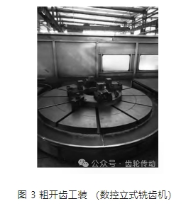 粗開齒設(shè)備及工藝:根據(jù)零件結(jié)構(gòu)、尺寸和設(shè)備的加工和裝夾范圍,確定不同的加工設(shè)備,同時考慮零件的裝夾定位、工裝等因素,設(shè)計專用工裝,確定軸向定位位置,采用合適的裝夾定位方式實現(xiàn)粗開齒。