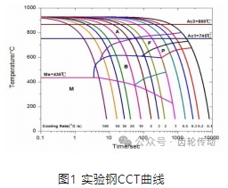 (1)在熱模擬試驗機上測得實驗鋼種的靜態 CCT曲線,為熱處理、滲碳和軋后控冷工藝的制定和調整提供依據。