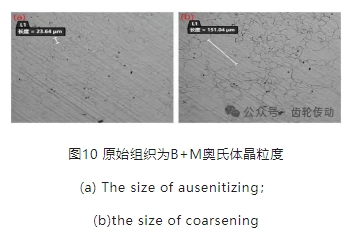 從圖 10 中可以看出原始組織為 B+M 狀態下,加熱至奧氏體化并保溫一段時間前后的奧氏體晶粒尺寸分別為 23.64 μm 和 151.04 μm,時間為7 min。
