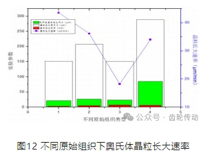 從圖 11 中可以看出原始組織為 M 狀態下,加熱至奧氏體化并保溫一段時間前后的奧氏體晶粒尺寸分別為 85.01 μm 和 289.00 μm,時間為 6 min。