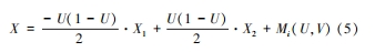式(5)中,X 表示的是插值點 1 與插值點 2 連線的橫軸坐標信息;X1 、X2 表示的是插值點 1、插值點 2 對應的橫坐標信息。