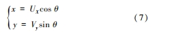 式(7)中,x 與 y 表示的是疲勞裂紋前緣坐標信息;Vy 表示的是縱軸方向對應的齒輪內部疲勞裂紋邊界應變數值;θ 表示的是半橢圓形裂紋內角。