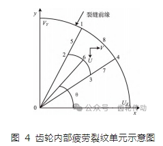 以圖 5 為依據,建立齒輪內部疲勞裂紋動態擴展模型,表達式為: