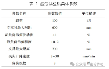 依據實驗需求對疲勞試驗機其它參數進行設置,具體如表 1 所示。