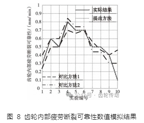 通過實驗獲得齒輪內部疲勞斷裂可靠性數值模擬結果如圖 8 所示。