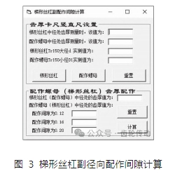 利用 Visual Bas? ic 可視化程序編制的梯形絲杠副配作間隙計算程序可以便捷、高效地實現最佳間隙要求,以 Tr150×24 為例,程序界面圖如圖 3 所示。