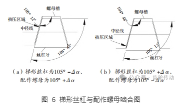 4)當嚙合區位于④位置,應選擇相對于上一螺母右半角增大的。