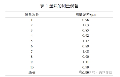 在完成上述 3 個誤差的標定及檢測后,對其展開測量誤差的評定,選取長度為 4 mm 的三等量塊進行重復性試驗,最終取其均值作為線結構光的測量系統綜合誤差。量塊的測量誤差見表 1。