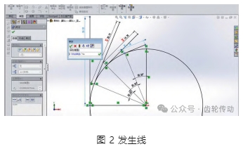 根據漸開線齒廓生成原理,首先構建基圓并分割基圓,利用樣條曲線來創建發生線,如圖 2 所示。