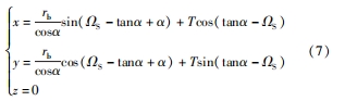 式中:rb 為基圓半徑,α 為壓力角,ΩS 為 1/2 基圓齒厚對應的圓心角,ΩS = π/ 2z + θn ,θn 為展角,θn = tan(αn)-αn,αn 為分度圓壓力角,z 為齒數。