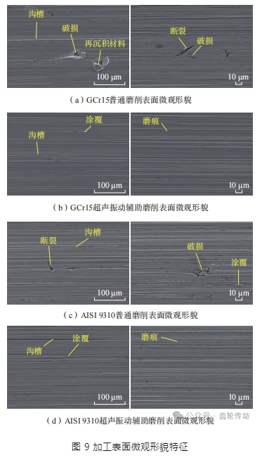本文對比了淬硬齒輪鋼 AISI 9310 和軸承鋼 GCr15 的超聲振動輔助磨削加工性。通過搭建齒輪鋼淬硬表面超聲振動輔助磨削試驗平臺,設計單因素試驗研究磨削加工工藝參數對磨削力、表面粗糙度的影響規律及作用機制,并分析了磨削表面微觀形貌及其影響因素,為制定超聲振動輔助磨削加工策略奠定基礎。