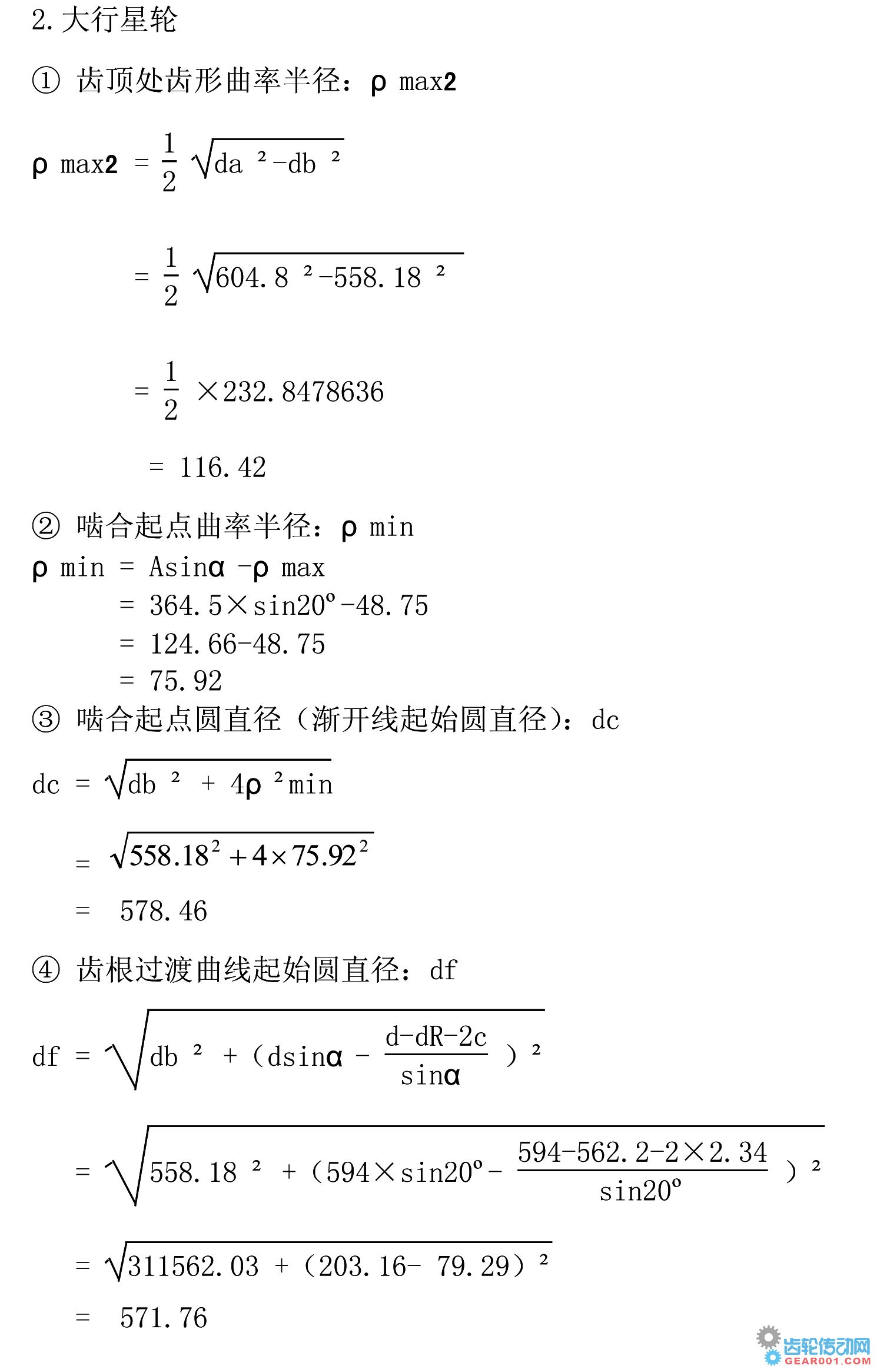 二、太陽輪、大行星輪的齒根干涉計(jì)算