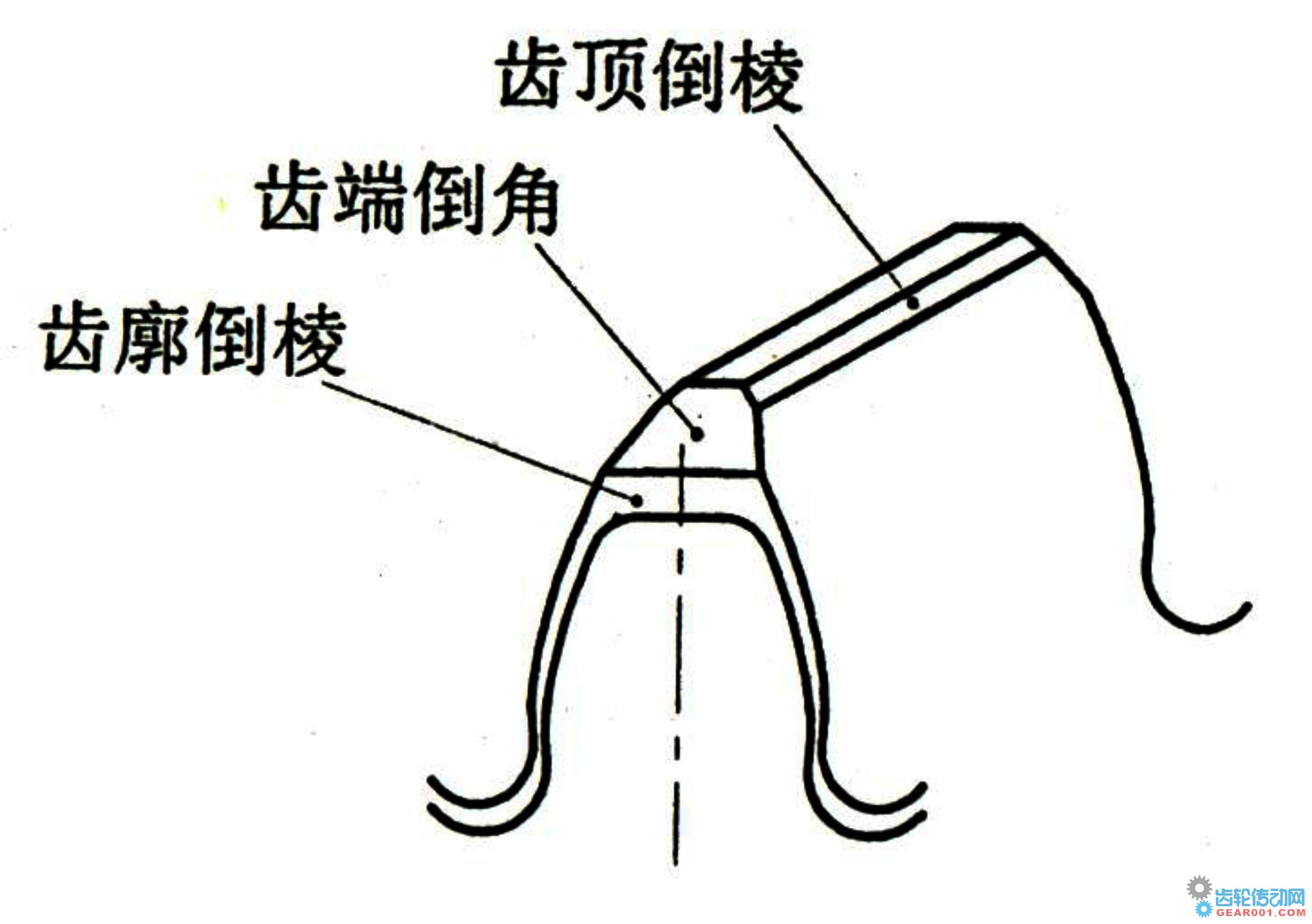 ①齒廓倒棱,見圖4所示。齒廓倒棱是沿齒輪端面的倒角,是防止由于小的磕碰造成齒面凸起而產(chǎn)生噪音和損傷嚙合齒面的一項(xiàng)重要的有效措施。