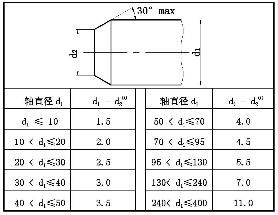 注:①若軸端采用倒圓倒入導角,則倒圓的圓角半徑不小于表中的d1-d2之值。