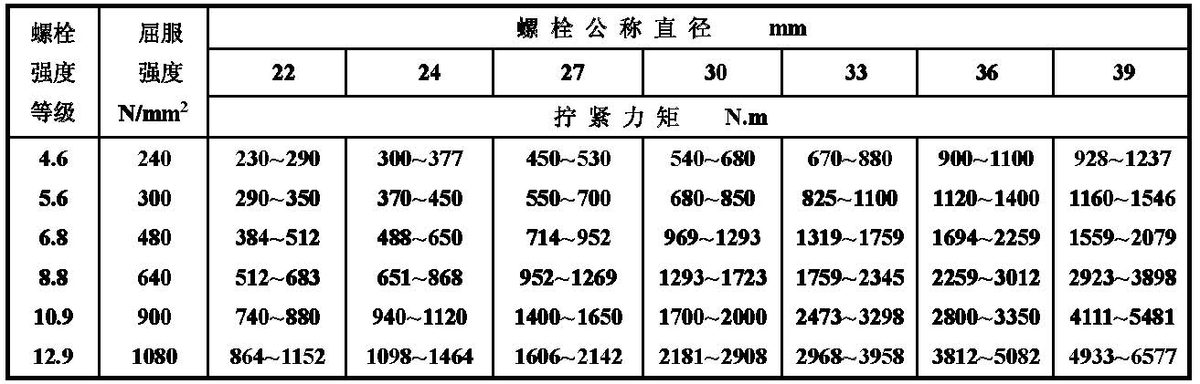 4.所有緊固螺栓應按規定的力矩,用力矩扳手上緊,其標準詳見表4所示。