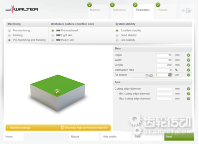 圖注:Walter GPS 2.20:從要解決的加工任務出發輸入參數。